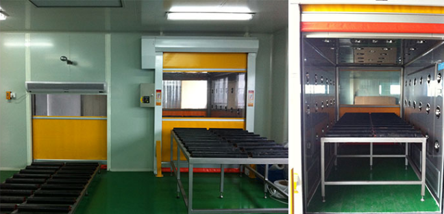 3、電動升降門貨淋室(門為電動控制上下升降),流水線被截斷成三部分,分別為潔凈區(qū)外,貨淋室內(nèi),潔凈區(qū)內(nèi);