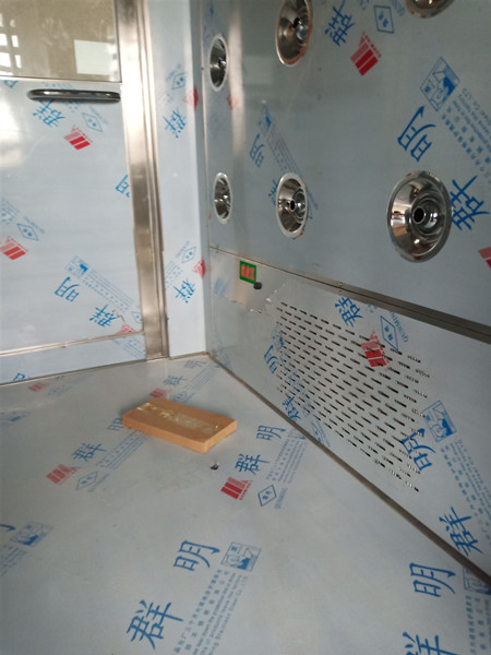 3、配全不銹鋼360度可調(diào)噴嘴,風(fēng)淋室內(nèi)底板采用的是抗磨損容易清洗的不銹鋼板。