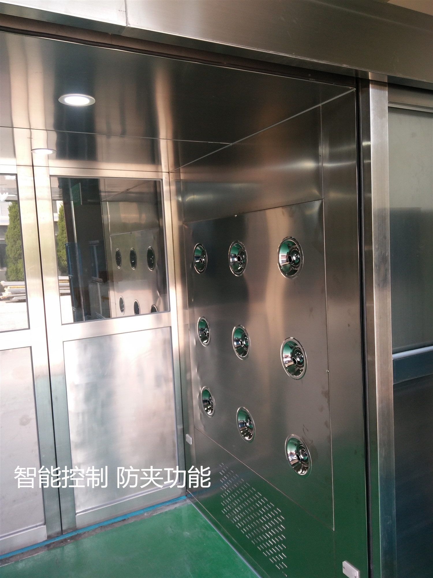 3、自動(dòng)門貨淋室箱體采用優(yōu)質(zhì)的冷軋鋼板制造,表面靜電噴塑處理,美觀大方,內(nèi)底板全不銹鋼板制做耐磨擦,易清潔。