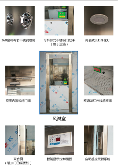 標(biāo)準(zhǔn)風(fēng)淋室尺寸1400*1400*2200雙人不銹鋼風(fēng)淋室使用流程