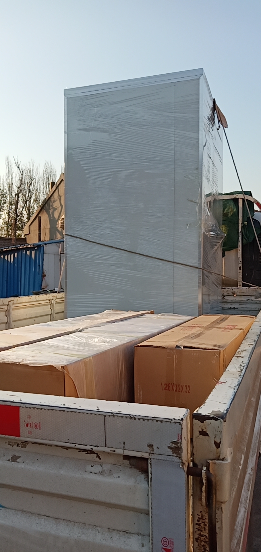 廣元風(fēng)淋室廠家生產(chǎn)完工的彩鋼板雙人三吹風(fēng)淋室于今日裝貨并送至青島宇日碳纖維公司。設(shè)備裝貨完成圖如下: